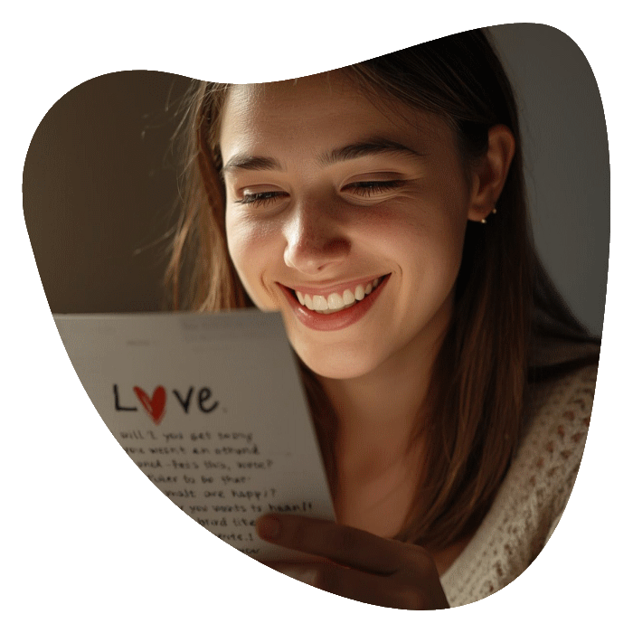 رسالة خاصة (100–150 كلمة) + فيديو قصير بموسيقى وصور شاعرية لترك أثر لا يُنسى.